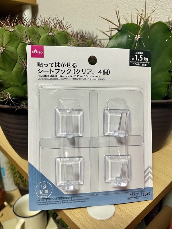 ダイソーを目的もなくふらつくのが好きです。なんかいいのないかなぁーなんて考えながら。今日は貼ってはがせるシートフックという商品をいっぱい買いました。